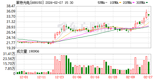 二级市集发挥方面,铁心2月27日收盘,莱特光电报收于34.13元/股,股价下落3.97%,总市值137.4亿元。