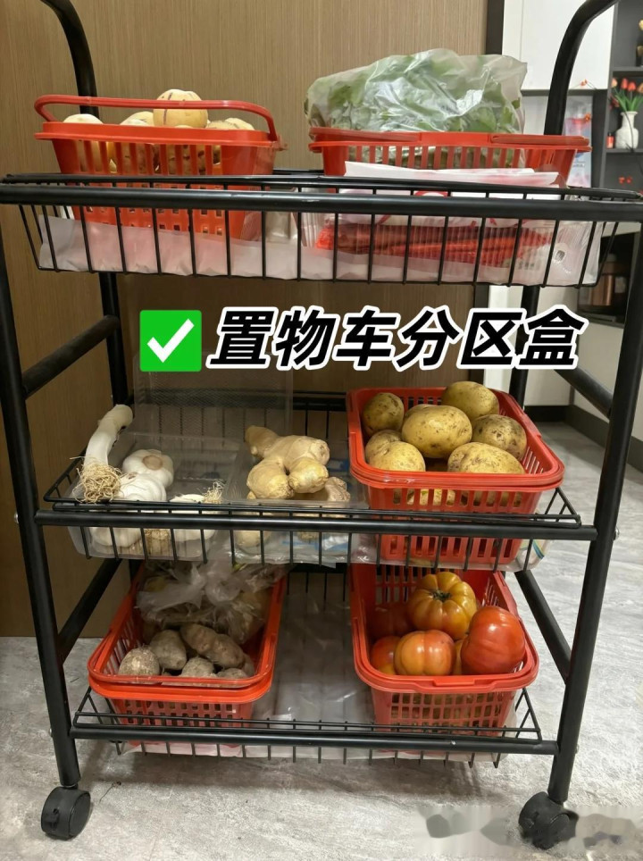 在买草莓的工夫,有一个这么红色的草莓筐,吃完草莓之后,这个筐不要扔掉,不错把它放在家里,手脚念收纳筐,尤其是放在厨房,收纳这些食材又透气又便捷,不错把厨房的食品分区收纳,无谓用钱去买收纳盒