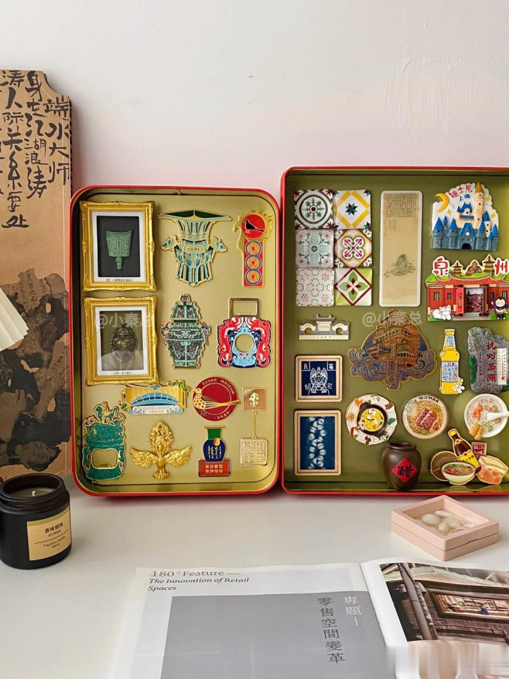 像这种铁盒的月饼盒,还不错收纳雪柜贴,买的雪柜贴太多了,雪柜如故放不下了,就不错把它放在月饼盒内部,都是铁的,能够径直吸在上头,绽放也便捷展示