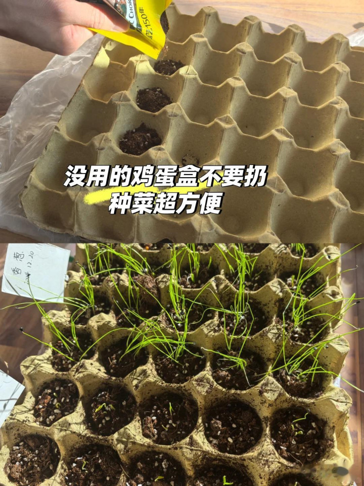 闲居买鸡蛋,剩下的这个鸡蛋托也不错再行再运用,咱们不错使用鸡蛋托来育苗。香菜,小葱、生菜、辣椒、韭菜,都不错放在鸡蛋托内部培育,独特便捷实用。