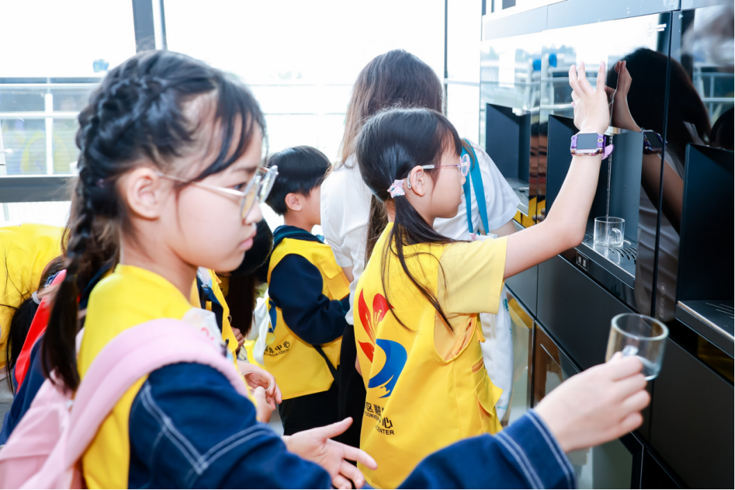 “我尝了三种水,滋味确切有点不相似!”有孩子共享说念。“因为不相似清水工艺就像不同密度的筛子,过滤后会给小水点留住不相似矿物资、有机物、酸碱度等。”进修员笑着评释,“他们的含量、组合不相似,就会产生不相似的口感和滋味。”孩子们端着水杯,若有所念念。一杯水的旅程,在这一刻变得具体而深入。