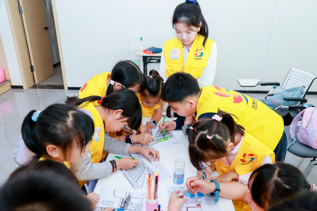视频扫尾,一场别开生面的涂色游戏就地驱动。职责主说念主员将几幅由北江引水工程要道场景制作而成的口舌线稿,分发给各小组——打水口、千里淀池、市政管说念、忠良泵房……孩子们细偶然作,稳当地为这些给水设施涂上色调,并按照“源—厂—网—端”的端正进行排序。
