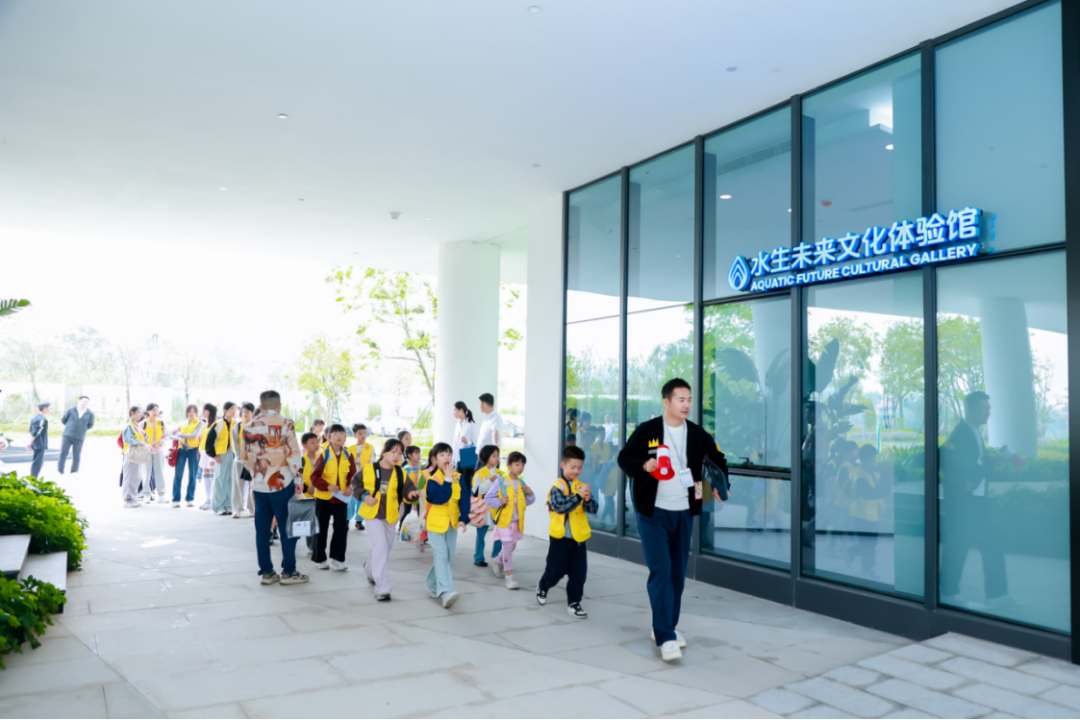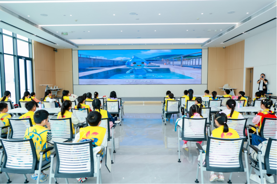 走进“水生畴昔文化体验馆”,图文光影构筑起一座立体的水之百科全书。展厅里,8名经过主理东说念主培训的“小小进修员”秩序登场,用明晰的童声和自信的姿态,向同伴们讲解着环球水资源概况与花齐区的给水历程。