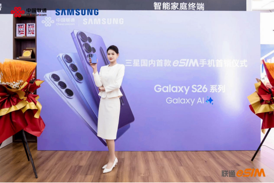 3月11日上昼,中国联通eSIM尝鲜季——三星国内首款eSIM手机Galaxy S26系列首销典礼在西单北生意厅渊博举行。中国联通集团相干部门负责东说念主、联通华盛通讯有限公司指导、三星电子大中华区相干负责东说念主以及首批体验用户、媒体代表皆聚现场,共同见证了三星Galaxy S26系列慎重首销。这款手机不仅是三星国内首款eSIM手机,更是国内AI+eSIM和会的典范之作,同期也标记着中国联通在鞭策eSIM手艺从可穿着设备向手机末端范畴化普及的进度中,迈出了要道一步。