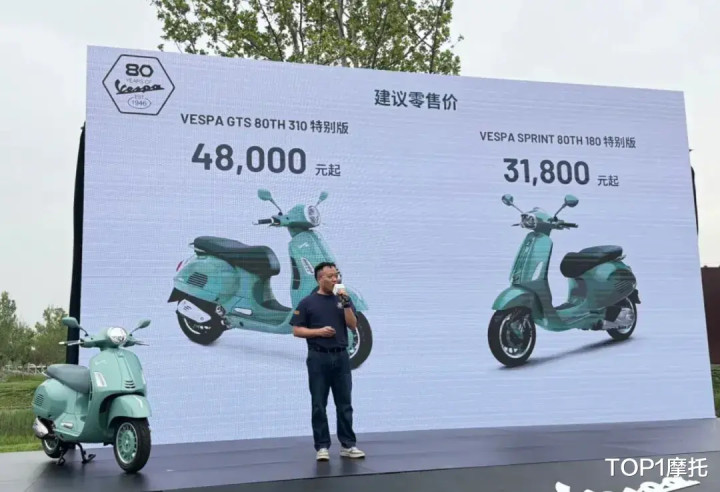 Vespa Primavera 180售价29800元、S18售价30300元、Tech180售价31300元。Vespa Sprint 180售价30300元、S180售价 30800元、Tech180售价31800元。GTS 80th 310突出书售价48000元、Sprint 80th 180突出书售价31800元。