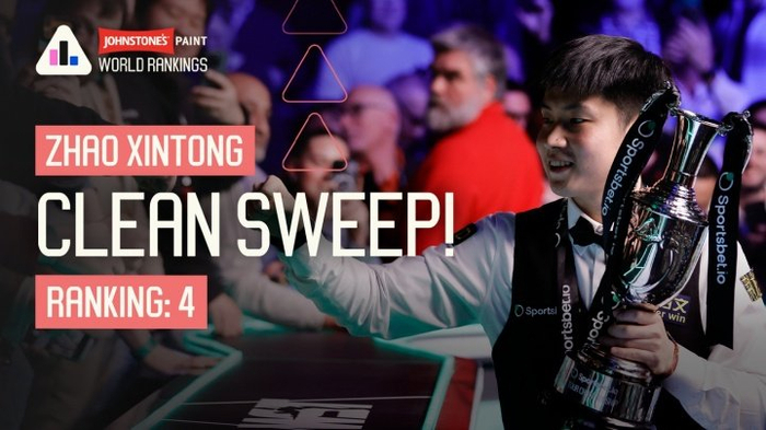 【#赵心童世排第4革命高#】#赵心童两月三冠#2026斯诺克巡回锦标赛决赛,赵心童10-3特鲁姆普夺得冠军,两个月内斩获个东说念主第三座排行赛冠军,接连拿来宇宙大奖赛、球员锦标赛与巡回锦标赛,胜仗包揽球员系列赛。