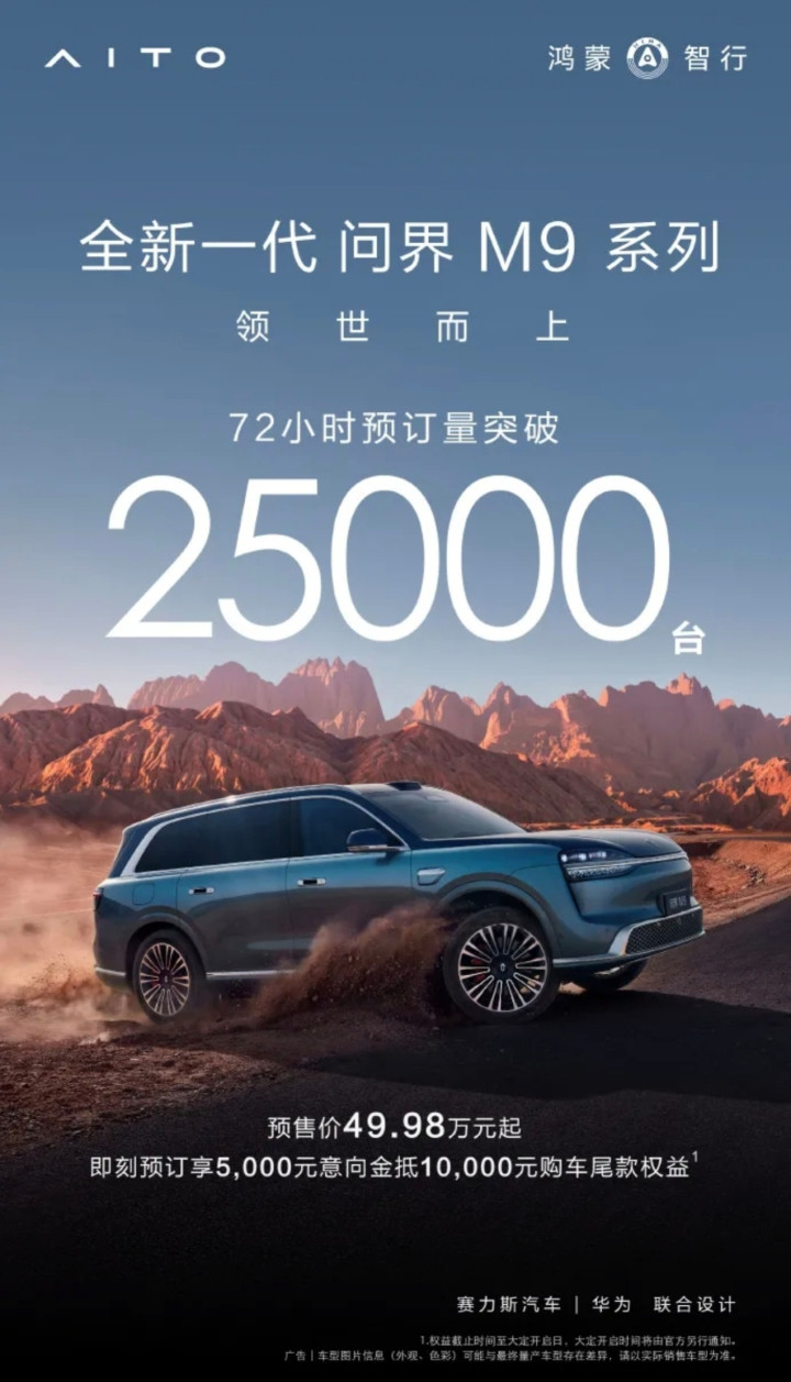 一台起售价49.98万的SUV,72小时预订破2.5万台,1小时冲到1.15万单,接近一半来自BBA车主增换购——这不是厚谊,这是现款投票。这一刻,问界M9仍是不仅仅“卖得好”,而是在正面撕开50万级豪华市集的护城河。